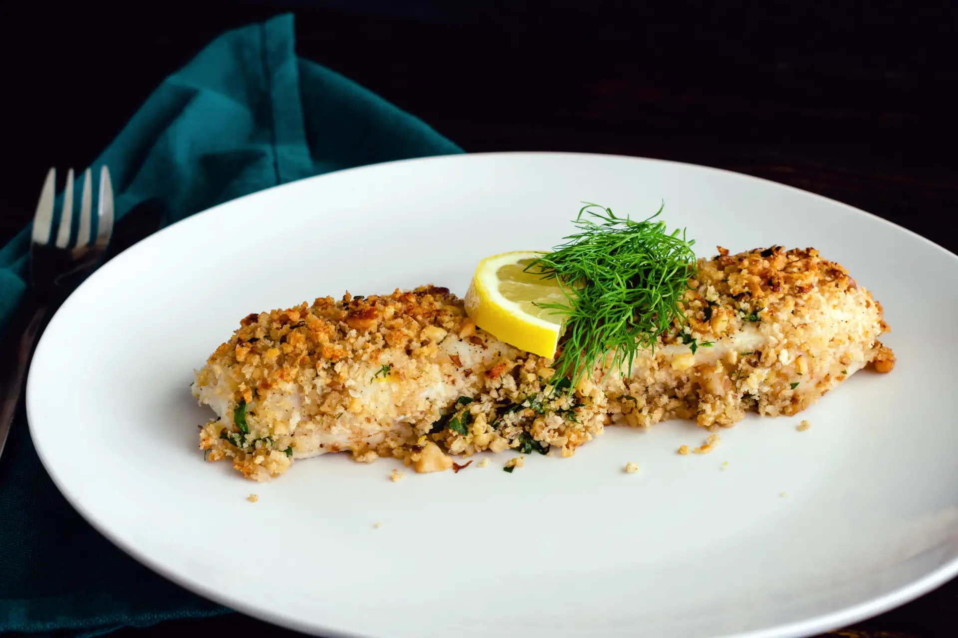 Corn Flake Crusted Halibut with Strawberry Balsamic Greek Yogurt