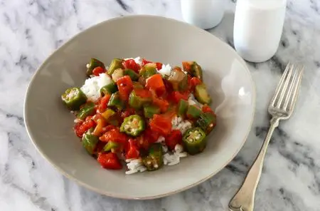We had this last night, and it was so yummy! I’m a huge okra and tomatoes fan.