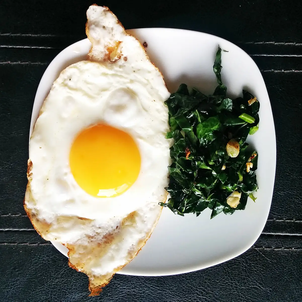 EVOO Fried Eggs with Sautéed Garlic Kale Recipe