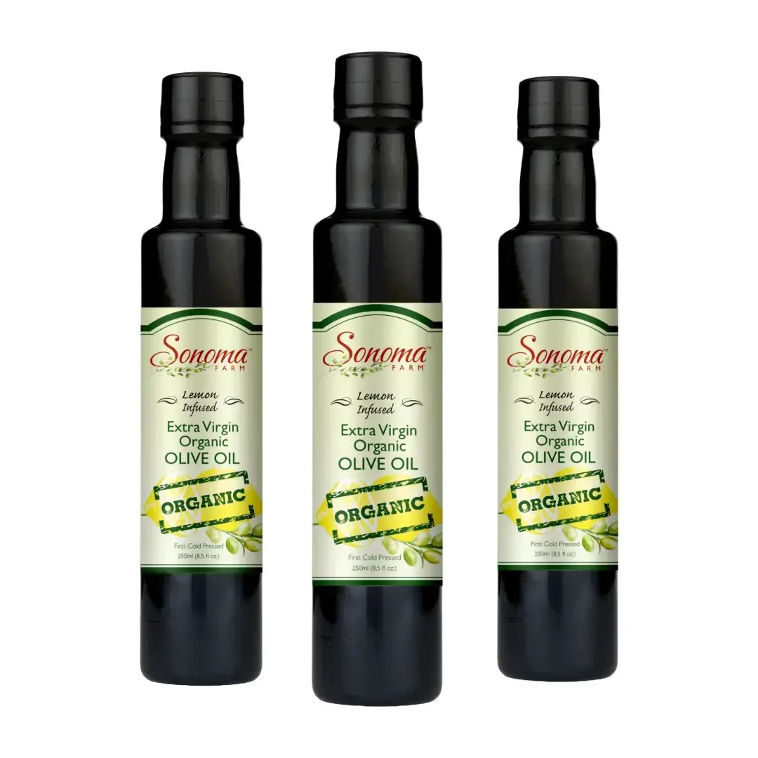 Sonoma Farm organic extra virgin cold pressed olive oil and the flavor of fresh lemons all in one. An unbelievable flavor combination a cook’s dream come true! Cook or dress any poultry or fish; also makes great dressing for veggies and salads…