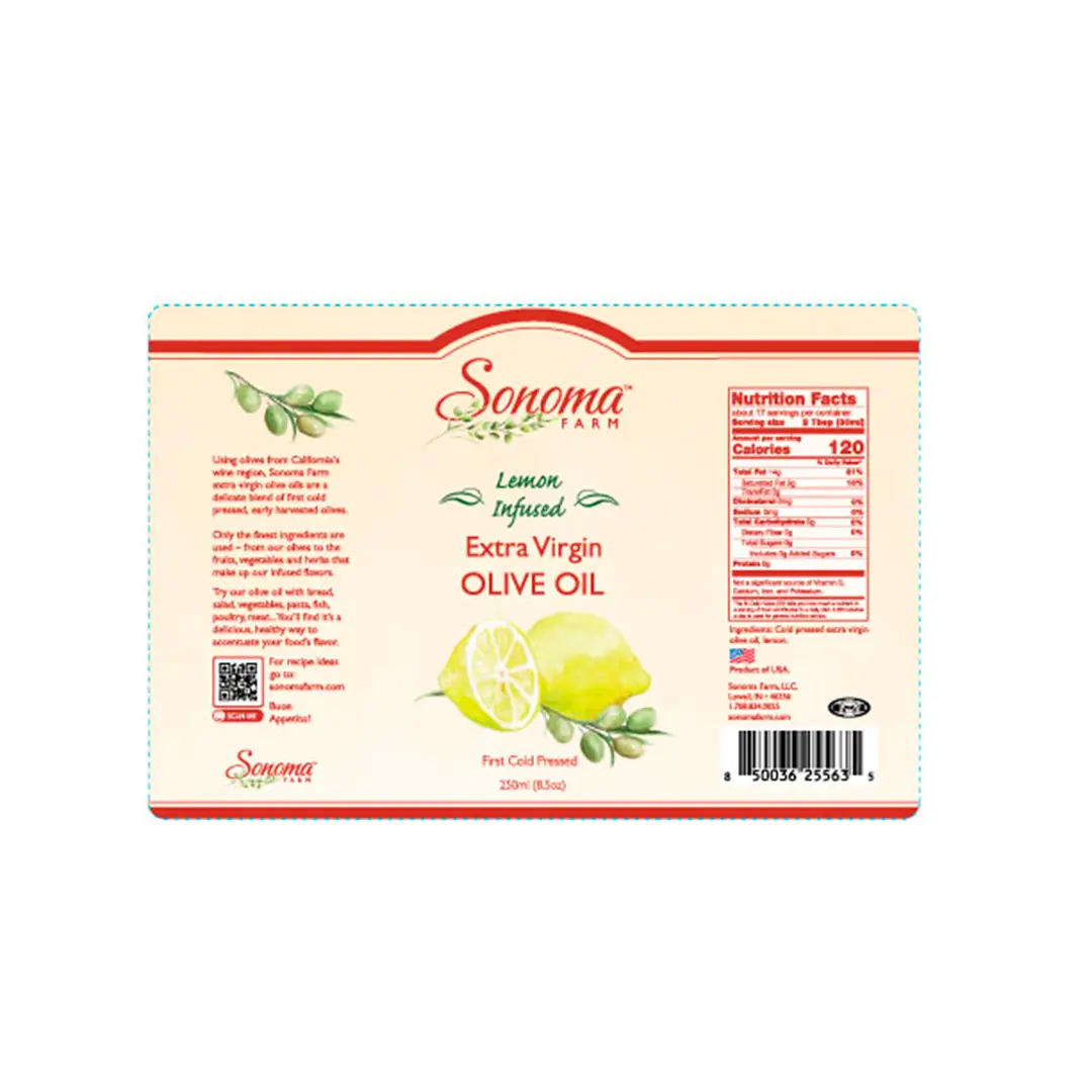 Sonoma Farm’s lemon-infused olive oil is available in all sizes on their official website. Explore their gourmet collection for pairing ideas!