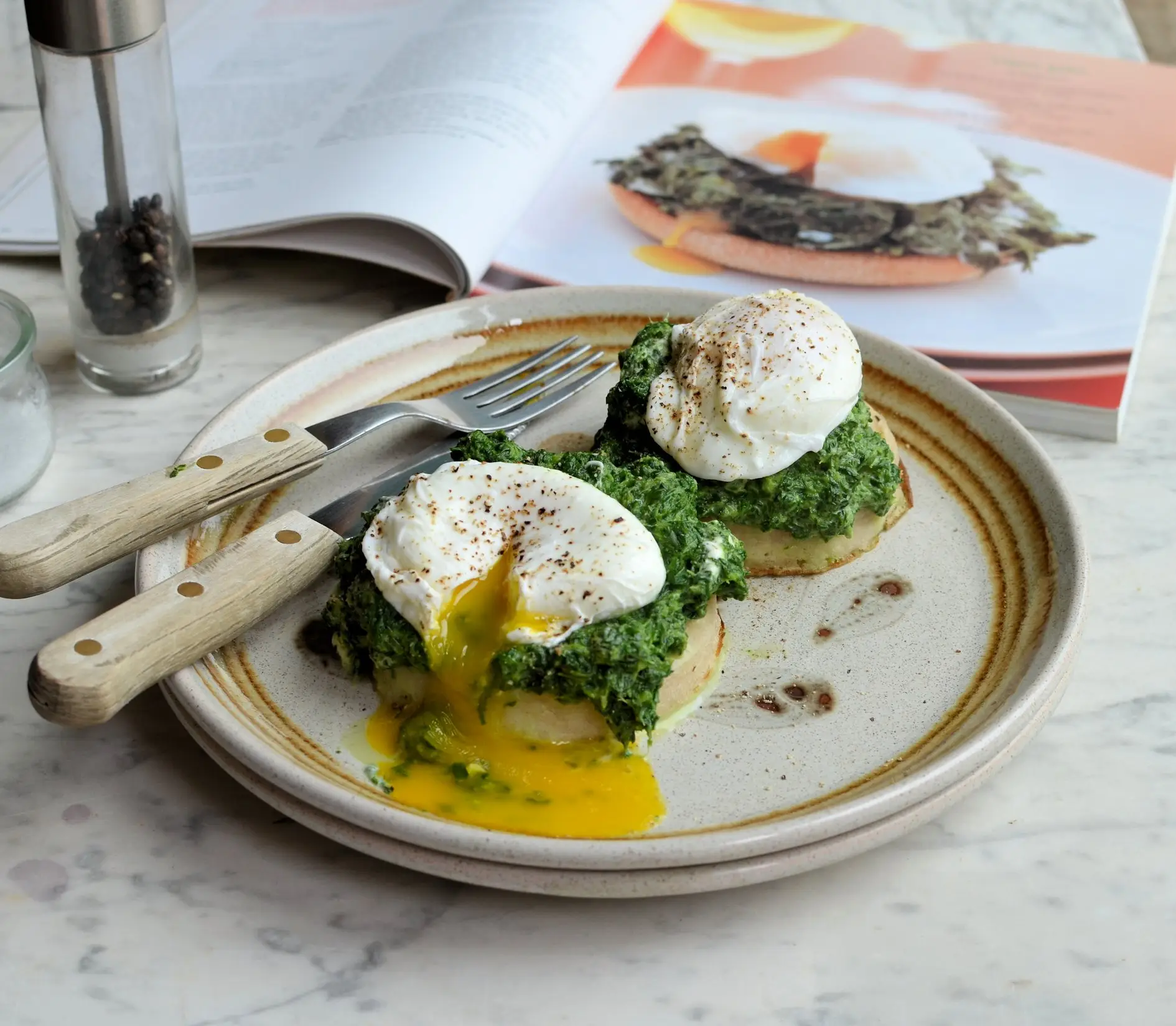 Poached Eggs with Spinach and Sage Rosemary Olive Oil Recipe