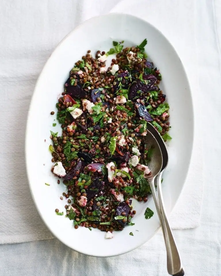 Warm Beetroot Garlic Olive Oil Lentil Salad Recipe