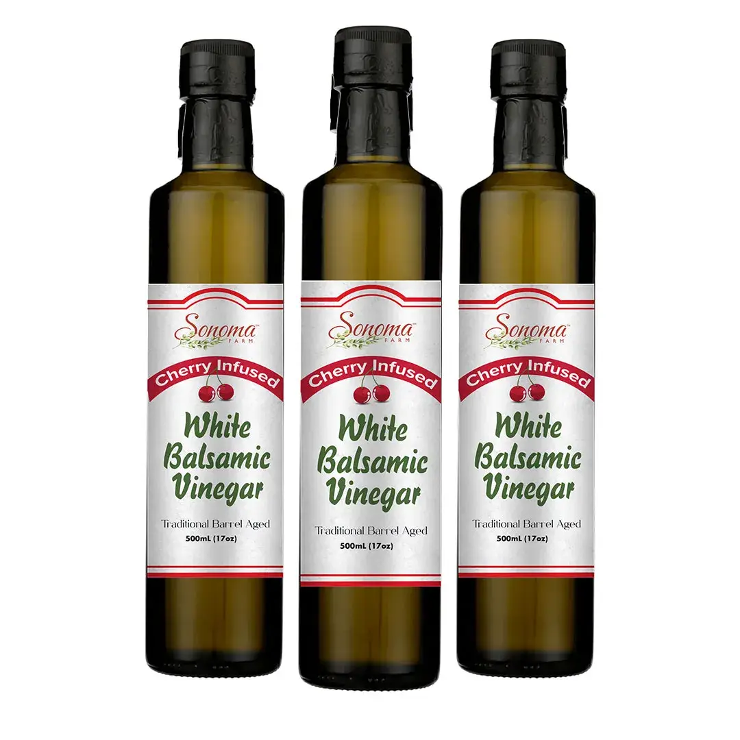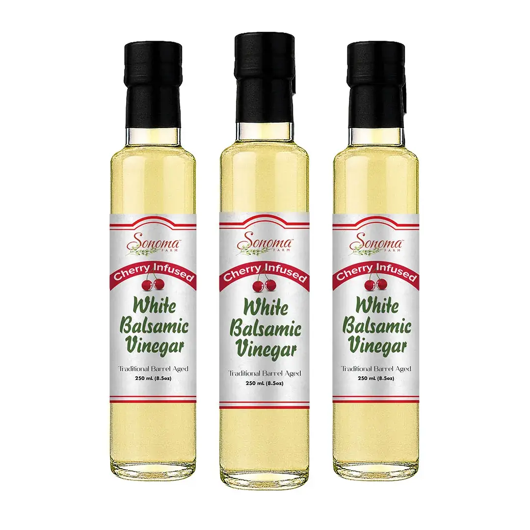 Enjoy the luscious, sweet-tart depth of ripe cherries paired with authentic barrel-aged white balsamic from Modena, Italy. Sonoma Farm’s small-batch Cherry White Balsamic Vinegar delivers a bright, fruity richness and balanced sweetness—perfect for enhancing both sweet and savory dishes.
