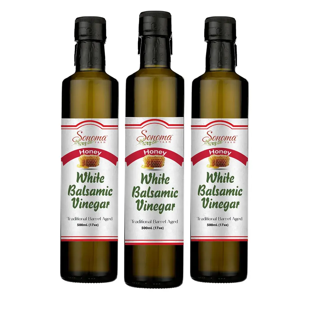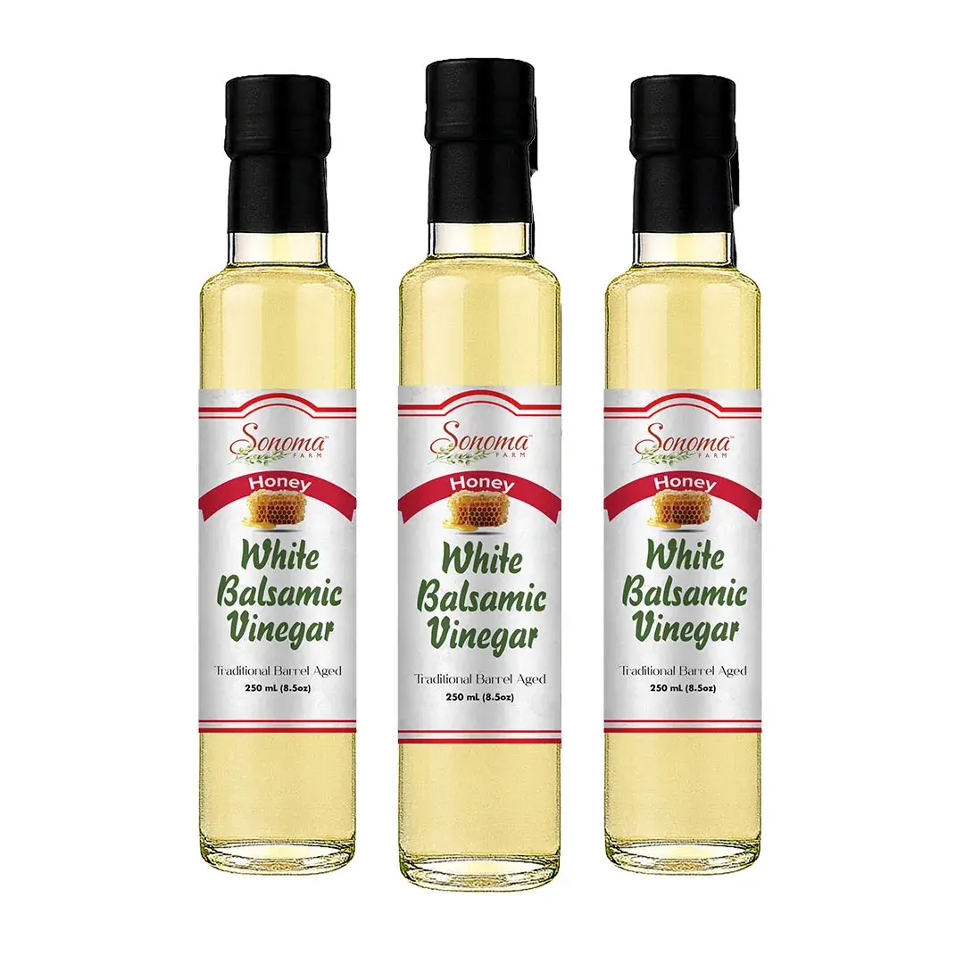 Enjoy the rich, naturally sweet essence of honey paired with authentic barrel-aged white balsamic from Modena, Italy. Sonoma Farm’s small-batch Honey White Balsamic Vinegar delivers a warm, golden complexity and smooth balance—perfect for enhancing both sweet and savory dishes.